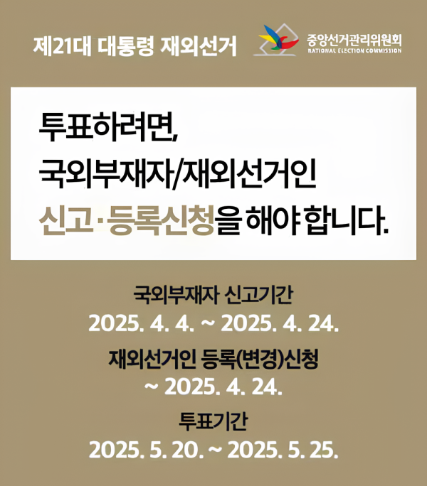 21대 대통령 재외선거 신고/ 신청배포 포스터