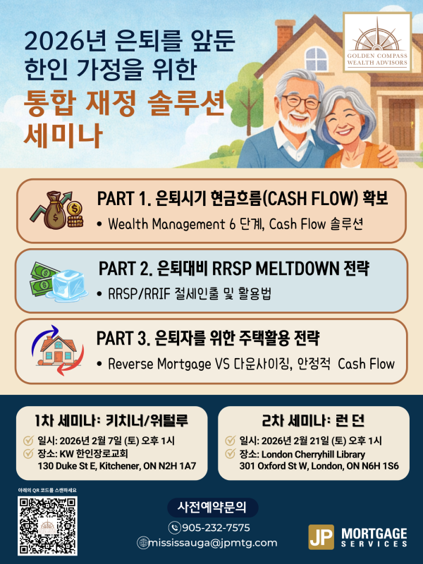 제목과 같이 JP 모기지에서 은퇴자를 위한 재정 솔루션 세미나를 열어주신다네요.